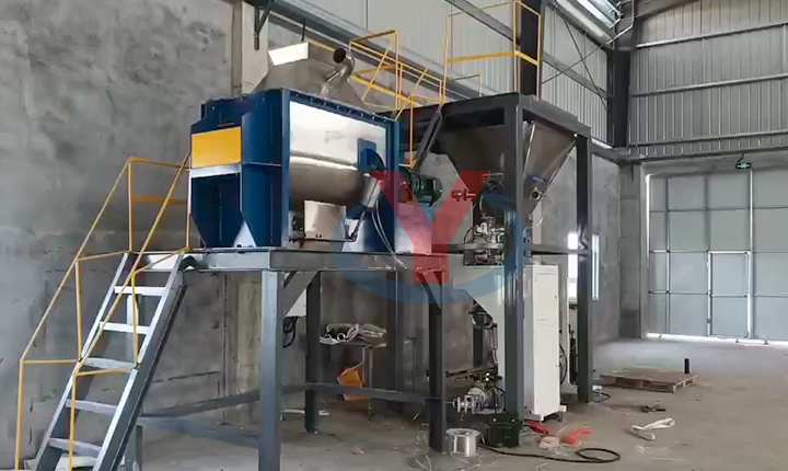 混合系統(tǒng)是物料生產(chǎn)過程中另一個核心部分。原料經(jīng)過配比之后進入混合設(shè)備,通過混合攪拌和傳動裝置進行均勻混合。